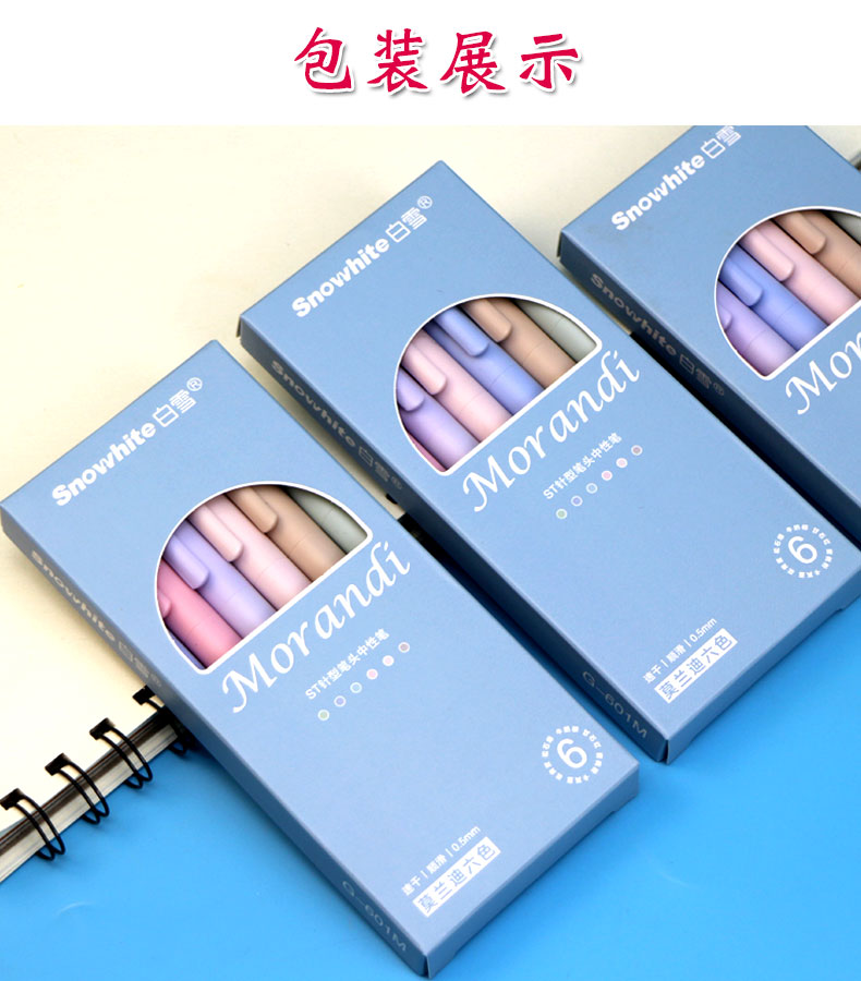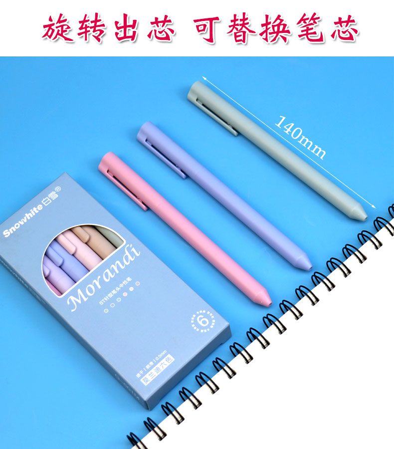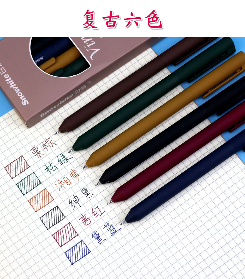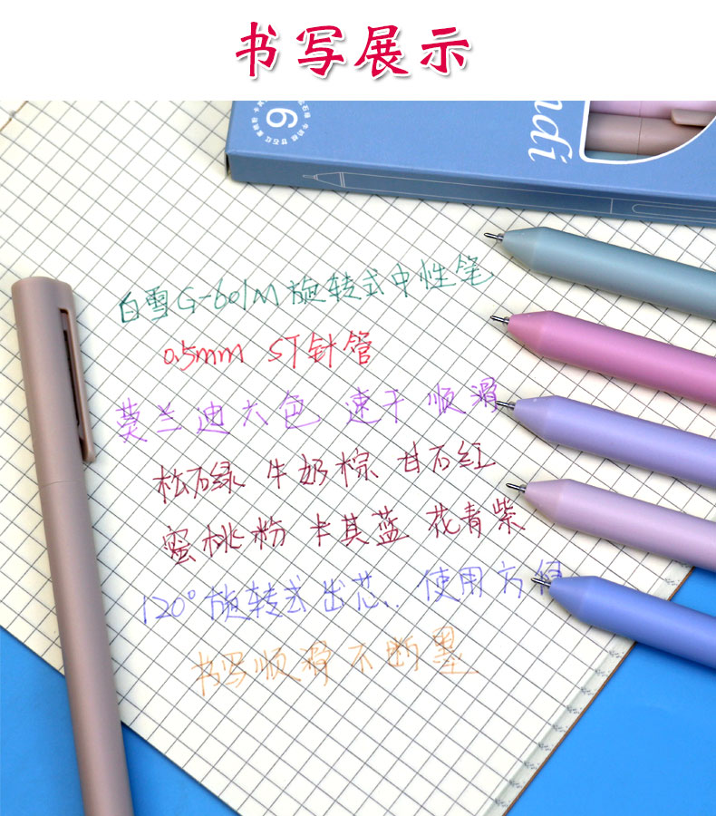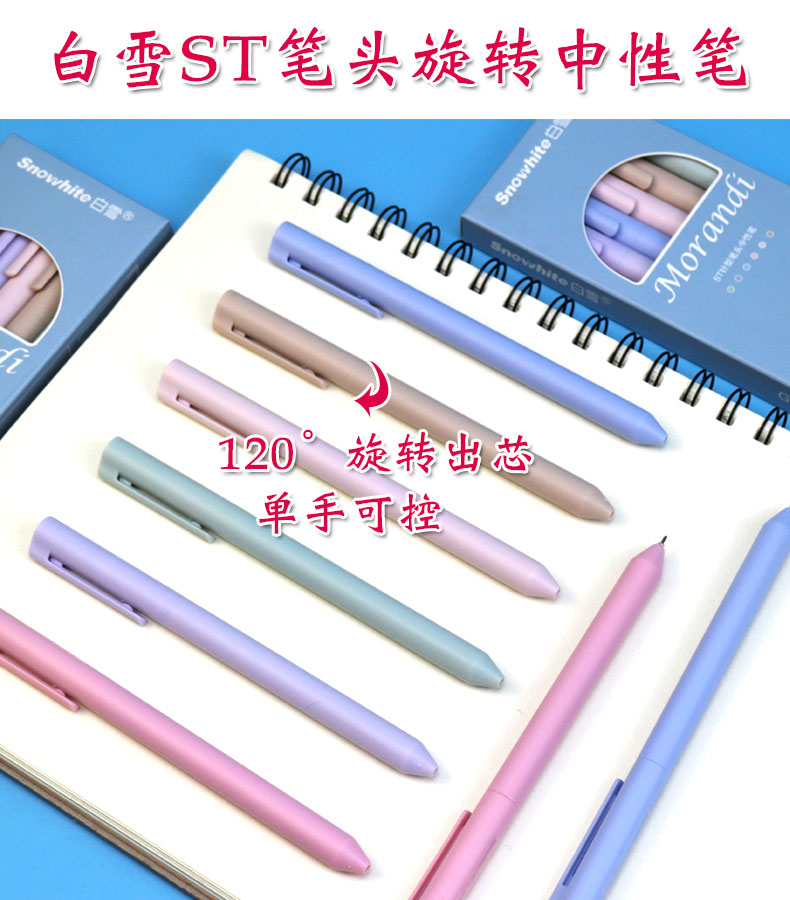 白雪G601旋转式彩色手账中性笔黑色速干ST笔头签字水笔复古风甜系